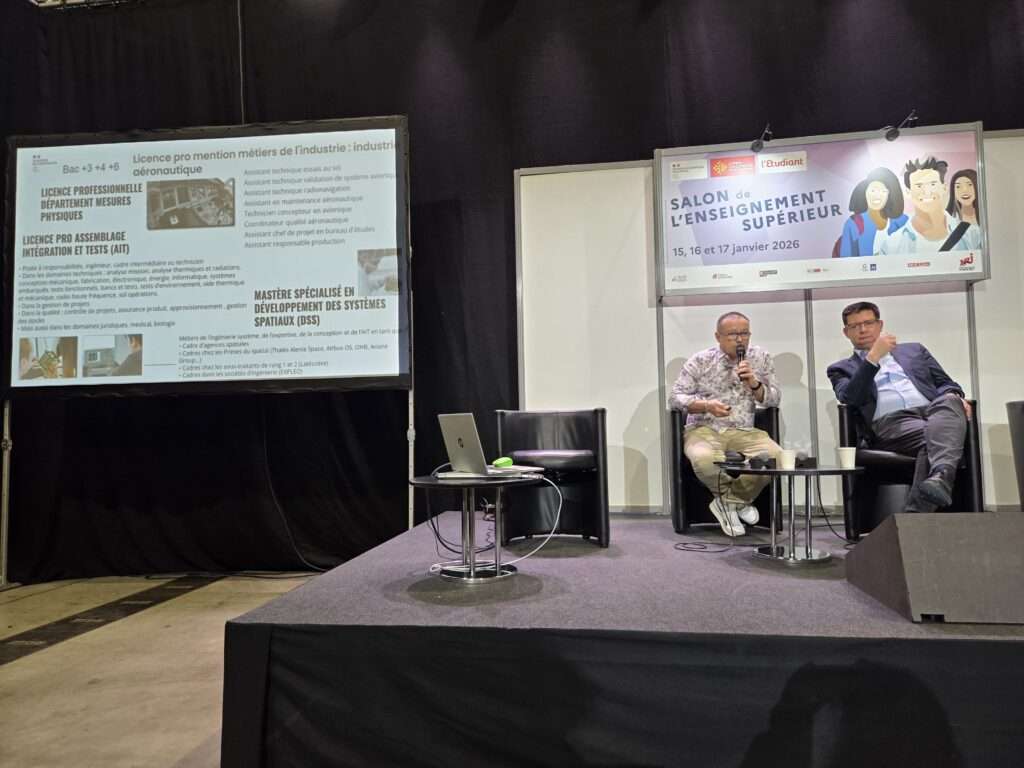 A l’occasion du Salon de l’enseignement supérieur, le Pr. Laurent DUSSEAU, directeur du Centre Spatial de l’Université de Montpellier (CSUM), est intervenu auprès des lycéen.nes lors d’une conférence consacrée à la « Découverte des études et des métiers du #spatial ».