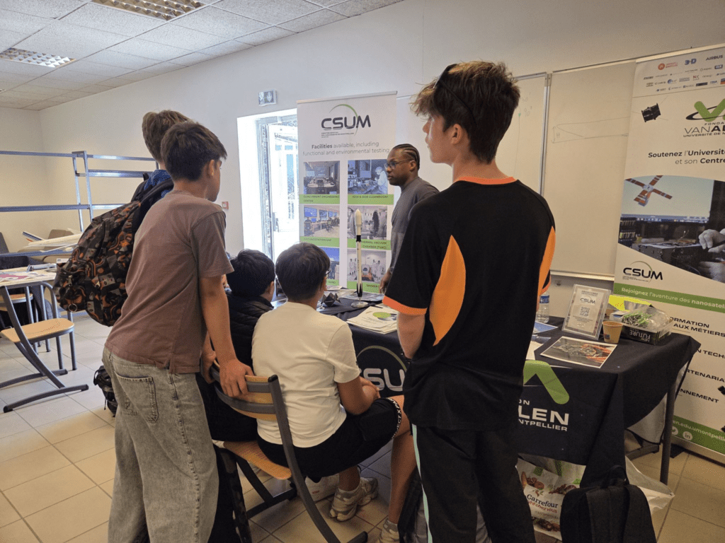 À l’aéroport de Nîmes, ils ont rencontré près d’une cinquantaine de jeunes (BIA, collégien·nes, lycéen·nes et BTS Aéro) venus découvrir les coulisses du Centre Spatial de l’Université de Montpellier (CSUM) et de nos hashtag#nanosatellites.